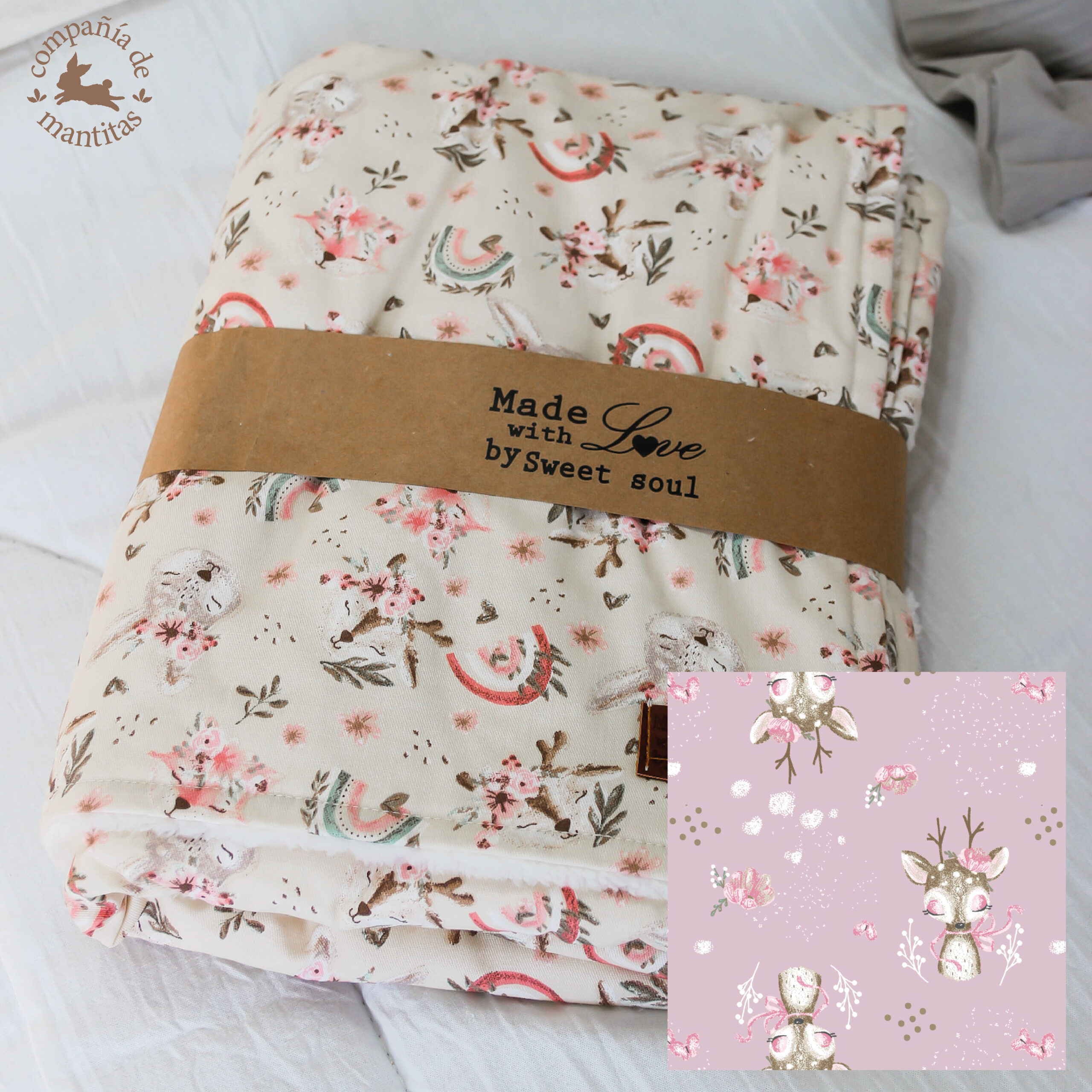 Mantita de Corderito BAMBI FELIZ ROSA
